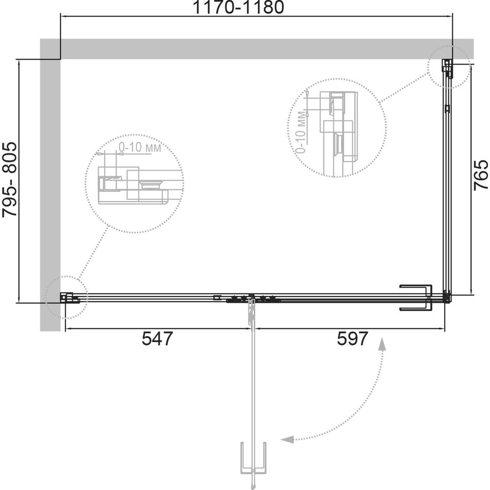 Распашная система дверей и ширина входа в 59,7 см добавляют удобства при использовании. Уголок устанавливается на напольное покрытие или поддон, который приобретается отдельно, а пристенная установка в угол обеспечивает экономию пространства.