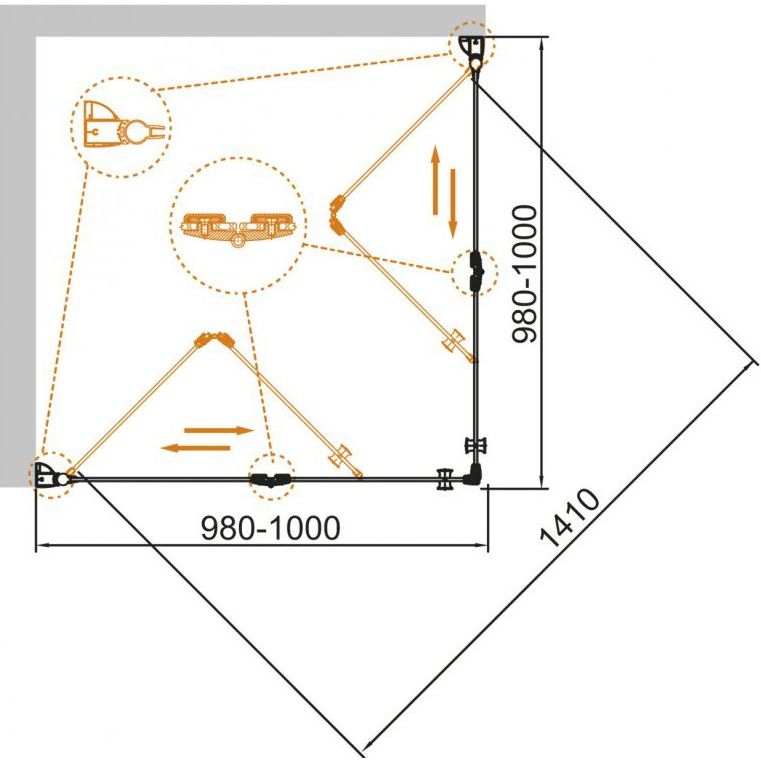 - Благодаря универсальной системе монтажа, душевой уголок можно устанавливать как на пол, так и на поддон.