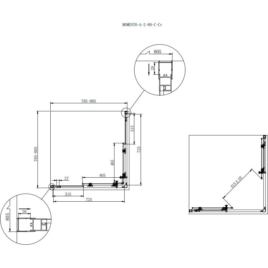 Перед покупкой душевого уголка Cezares Momento, учтите, что для установки требуется поддон, приобретаемый отдельно. Раздвижные двери облегчают доступ в кабину, что особенно важно для небольших ванных комнат. Благодаря регулируемой ширине, монтаж уголка может быть выполнен с учетом особенностей вашего помещения.