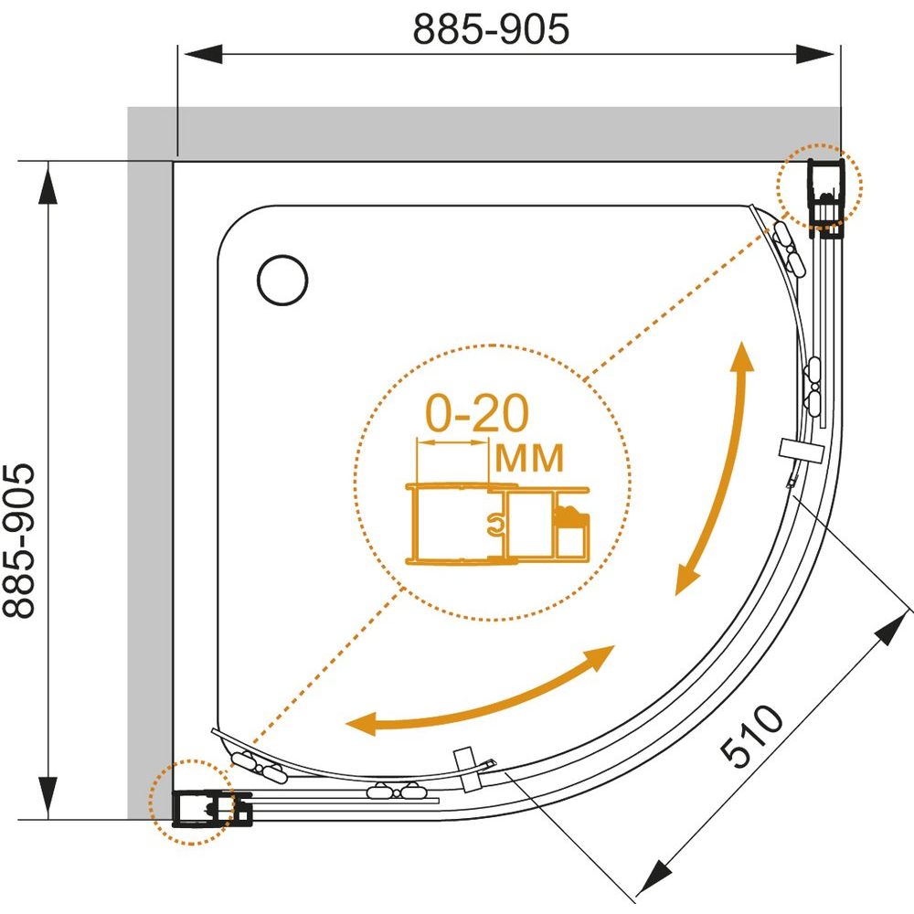 Душевой уголок Cezares Momento R 2 90 C Cr имеет размеры 90x90 см, что делает его идеальным выбором как для просторных, так и для компактных ванных комнат. Установка возможна как на пол, так и на поддон, что позволяет максимально удобно интегрировать его в ваше пространство, особенно благодаря пристенному монтажу в угол. Ширина входа составляет 51 см и может регулироваться на несколько сантиметров для достижения идеальной установки. Хромированный алюминиевый профиль подчеркивает стильный внешний вид, а 3-летняя гарантия свидетельствует о высоком качестве. Страна производства — Италия.