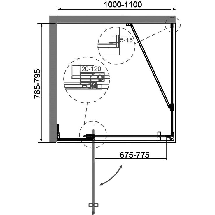 Душевой уголок Cezares Slider AH 1 имеет диапазон ширины от 100 до 110 см, а его глубина варьируется в пределах 78.5-79.5 см. Благодаря боковым профилям возможна дополнительная регулировка ширины входа от 67.5 до 77.5 см. Полотно двери выполнено из закаленного стекла по стандарту EN12150-1:2000, благодаря чему оно отличается повышенной прочностью и безопасностью. Алюминиевый профиль с черной матовой отделкой соответствует стандарту DIN17611 2007, что гарантирует долговечность и стильный внешний вид. Уникальность дизайна заканчивается на распашной системе дверей с тонированным полотном, что делает этот продукт идеальным выбором для современной семьи.