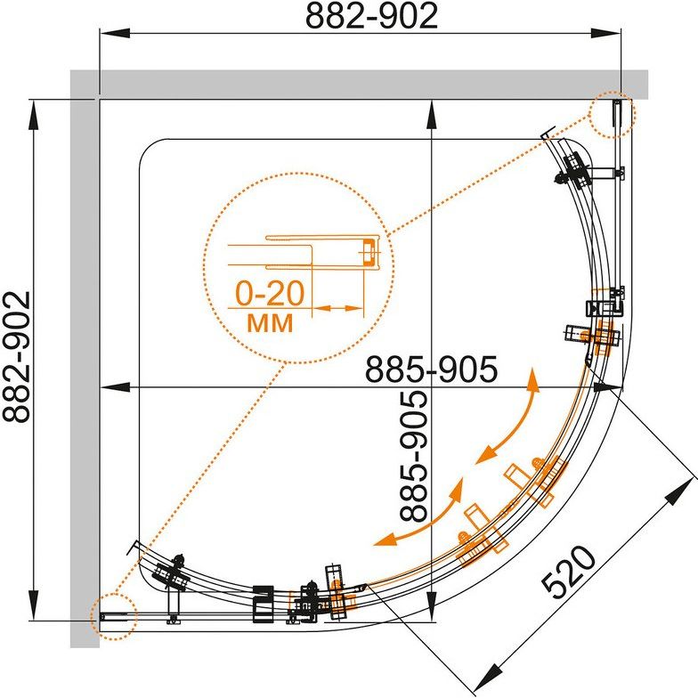Размеры уголка составляют 90,2x90,2 см, с возможностью регулировки ширины для наибольшей гибкости при установке. Конструкция создана для напольного монтажа и также может устанавливаться на поддон (приобретается отдельно). Уголок оснащён раздвижной системой дверей и хромированным алюминиевым профилем. Стеклянные элементы выполнены из закалённого стекла, соответствующего международным стандартам безопасности. На изделие распространяется 3-летняя гарантия, а всё производство осуществляется в Италии — стране, признанной эталоном качества и стиля.