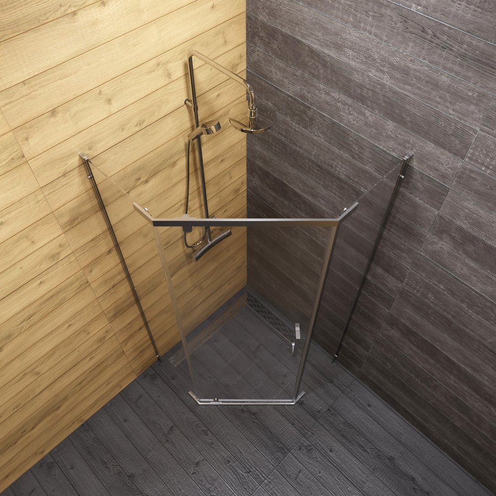 Пятиугольный душевой уголок DIWO «Казань 90х90» станет идеальным решением для тех, кто ценит утонченный дизайн и практичность в интерьере своей ванной комнаты. Этот эстетически привлекательный уголок поражает простотой прямых линий и полной прозрачностью, создавая ощущение свободы и простора даже в небольших ванных комнатах. Закаленное стекло толщиной 6 мм не только обеспечивает уникальную прочность, но и сохраняет все свои качества при воздействии высоких температур. В случае повреждения стекло безопасно распадается на мелкие неострые кусочки. Хромированный алюминиевый профиль и распашная дверь подчеркивают современность и удобство конструкции, оставляя вам возможность выбора стороны открывания во время установки.