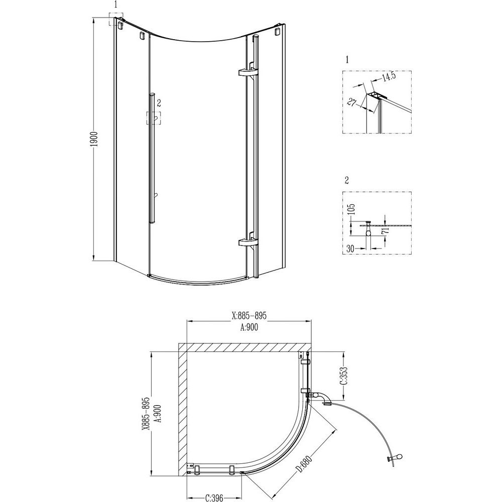 Душевой уголок имеет компактные размеры 90x90 см и устанавливается в угол на поддон или без него. Прозрачные дверные полотна с распашной системой обеспечивают удобство и лёгкость в использовании, а ширина входа составляет 68 см. Алюминиевый хромированный профиль с глянцевым покрытием добавляет изысканности изделию. Регулируемая ширина профиля на несколько сантиметров позволяет с легкостью адаптировать уголок к особенностям вашей ванной комнаты. Продукт идет с пятилетней гарантией качества.