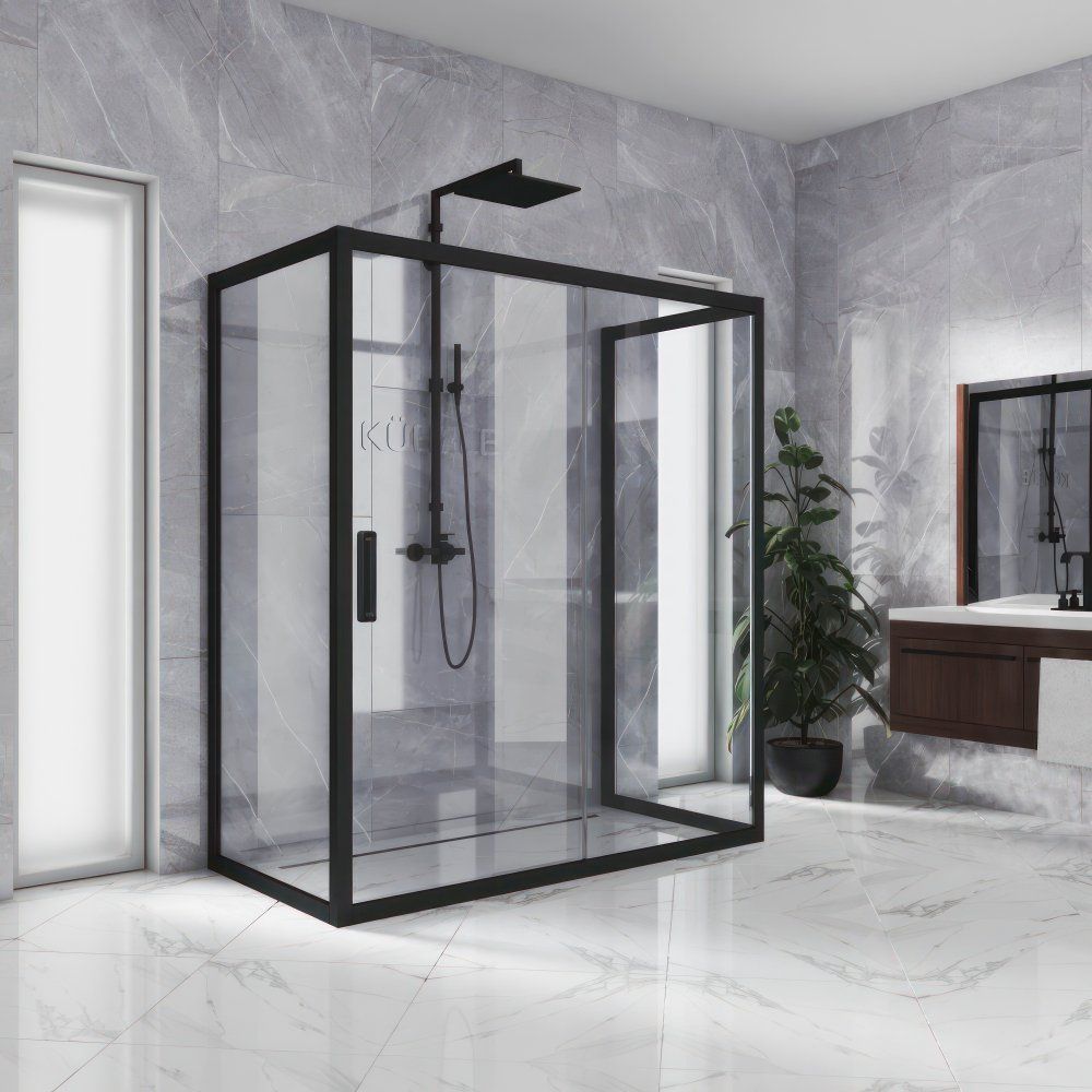 Душевой уголок Kubele DE019 R2U-CLN-BLMT 120х100 см с матовым черным профилем — это идеальное сочетание стиля и функциональности для вашей ванной комнаты. Инновационная система крепления позволяет обойтись без видимых саморезов, обеспечивая эстетичный внешний вид и легкость в установке. Благодаря уникальной конструкции роликов, которые скрыты с лицевой стороны, Kubele DE019 гарантирует мягкое и бесшумное скольжение дверей.