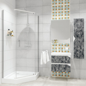 - Уникальный пятиугольный дизайн, который оптимизирует пространство ванной комнаты.