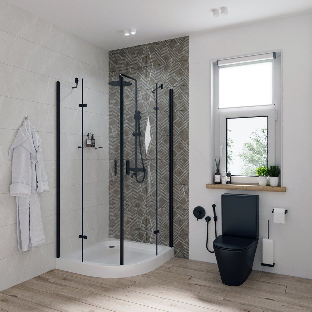 Душевой уголок Niagara Nova NG-6816-08 BLACK предлагает идеальное сочетание стиля и функциональности, которое добавит элегантности вашей ванной комнате. Этот уголок выполнен в современном дизайне с четвертькруглой формой и матовым черным профилем, который привнесет в ваш интерьер нотку утонченной изысканности. Благодаря распашной системе дверей и прозрачным стеклянным полотнам, он дарит вам не только комфортные условия для принятия душа, но и создает ощущение простора.