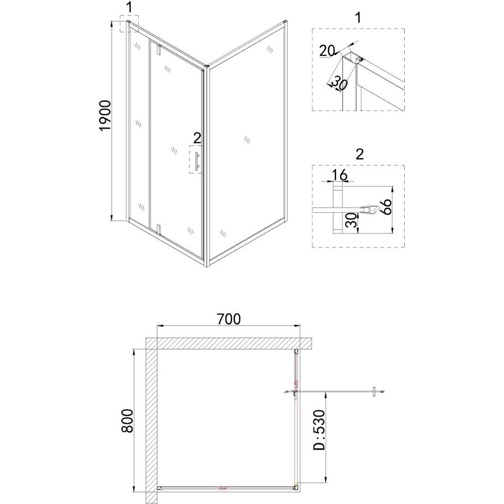 Душевой уголок прямоугольной формы размером 80x70 см идеально подходит для установки в угол вашей ванной комнаты. Он оснащен прочным алюминиевым профилем с глянцевой поверхностью, что облегчает уход за конструкцией. Ширина входа в душ составляет 53 см, а регулировка нескольких сантиметров позволяет оптимально вписать уголок в имеющееся пространство.