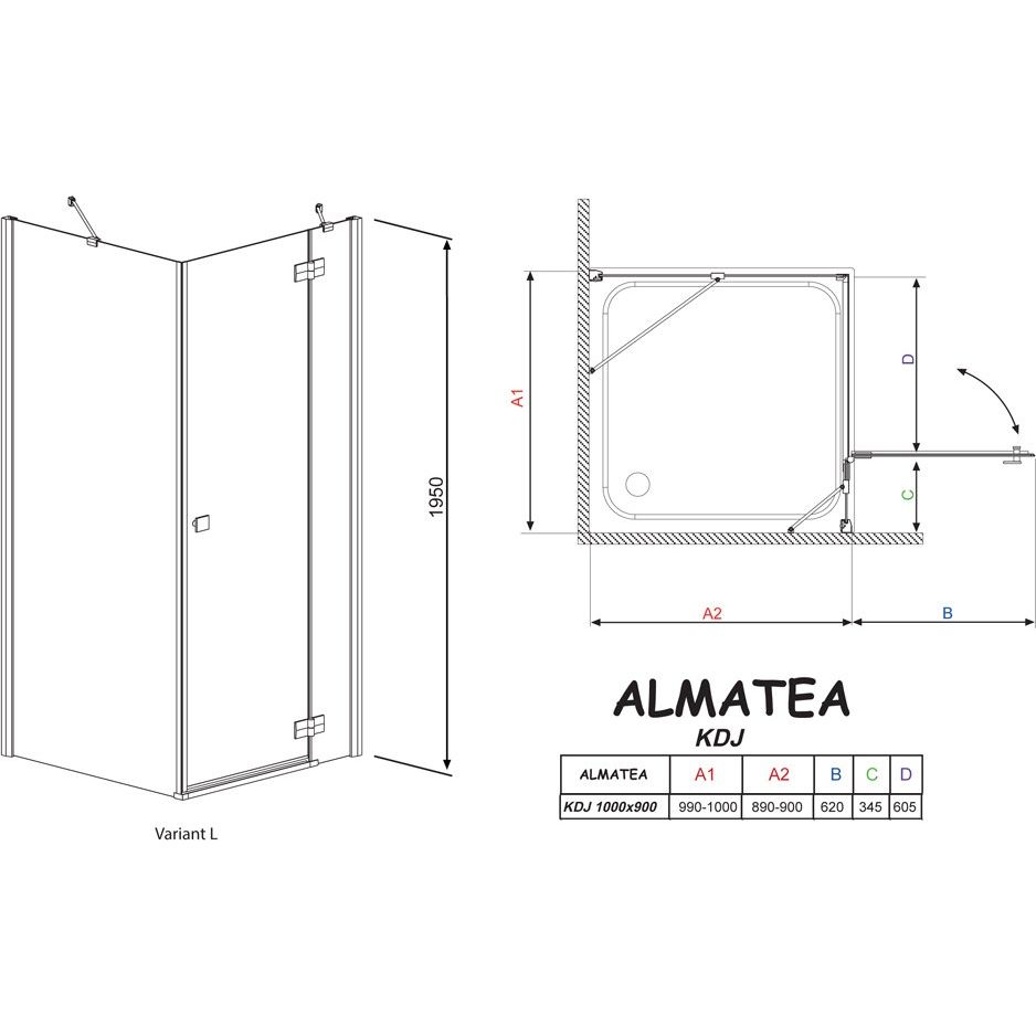 Размеры душевого уголка составляют 100x90 см, обеспечивая оптимальное пространство для комфортного принятия душа. Изделие поддерживает как напольный монтаж, так и установку на поддон, который приобретается отдельно. Представлена одностворчатая распашная дверь, открывающаяся наружу, облегчая доступ в душевое пространство. Каркас из алюминия и хромированные профили добавляют эстетическую привлекательность и устойчивость конструкции. Процесс регулировки позволяет изменять ширину уголка на несколько сантиметров, благодаря чему возможно максимальное подгонку под размеры вашей ванной. Производитель предоставляет гарантию на 3 года, которая подтверждает надежность душевого уголка Radaway Almatea, изготовленного в Польше.