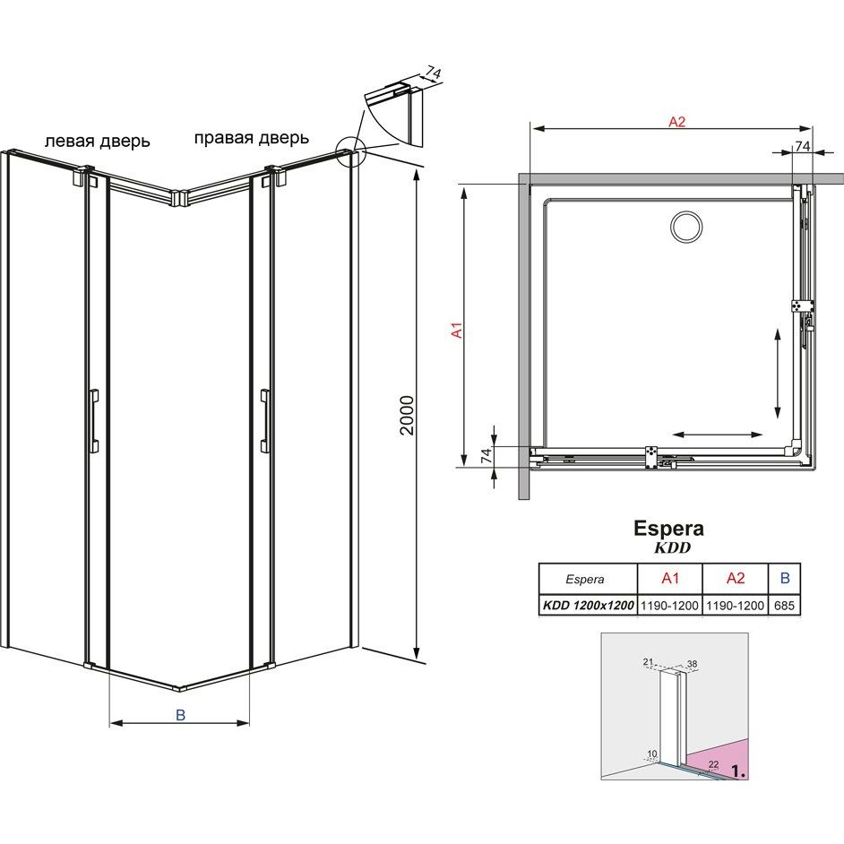 Внимание! Душевой уголок Radaway Espera KDD 120 можно устанавливать без поддона, однако поддон не входит в комплект поставки и приобретается отдельно. Убедитесь, что выбираемый вами способ установки соответствует вашему помещению и требованиям безопасности.