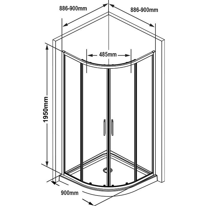Душевой уголок имеет габариты 90x90 см и подходит для установки как на пол, так и на поддон. Входная ширина составляет 48.5 см, а благодаря регулируемой ширине профиля, его можно настроить под ваши индивидуальные размеры ванной. Изготовлен с использованием алюминиевого профиля, покрытого стойким черным матовым напылением.