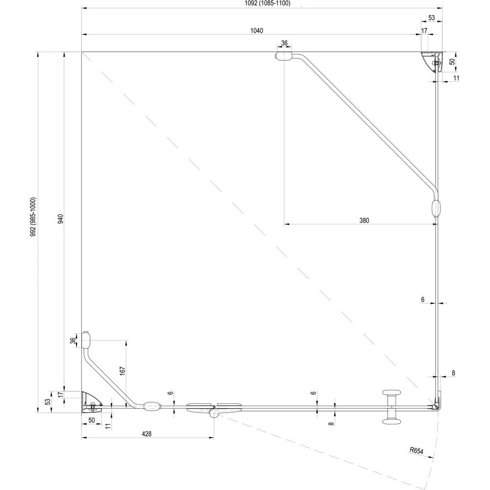 Душевой уголок размером 110x100 см устанавливается как на пол, так и на поддон (продается отдельно). Система распашных дверей обеспечивает комфортный вход шириной 62.9 см. Профиль выполнен из хромированной латуни с глянцевым покрытием. Удобная регулировка ширины позволит адаптировать уголок к вашим предпочтениям.