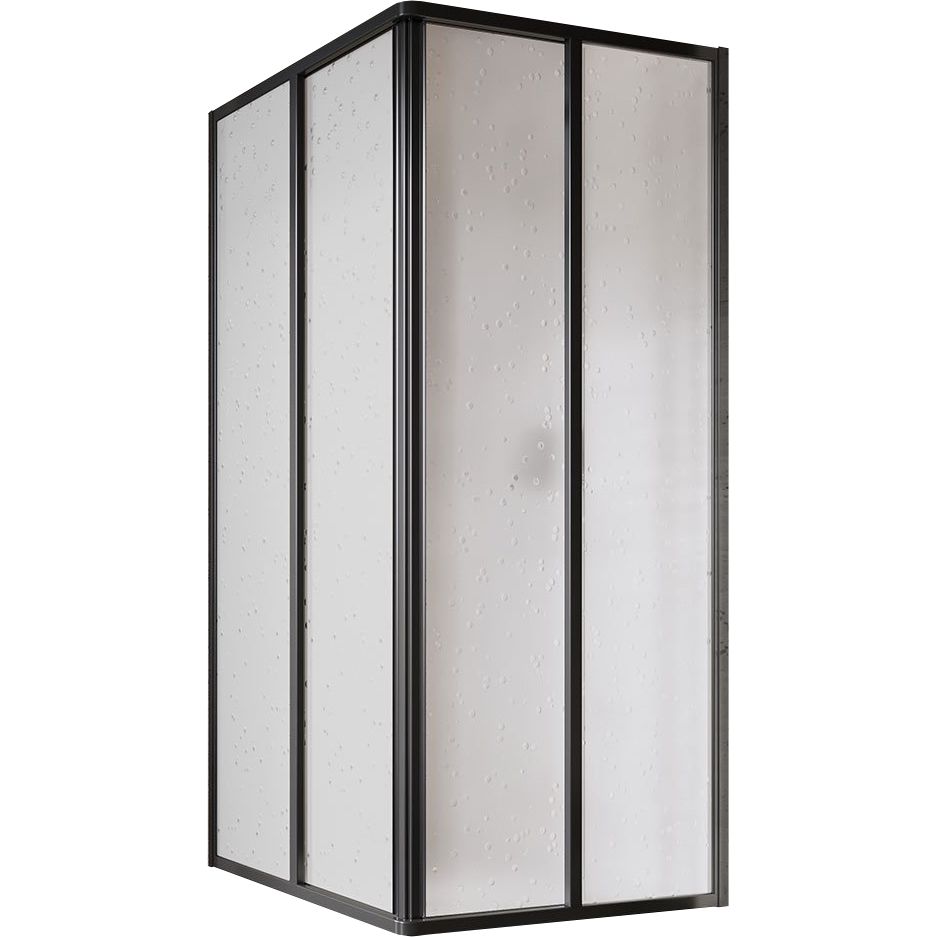 Душевой уголок представляет собой конструкцию с размерами 80x80 см и предполагает как напольный, так и настенный монтаж в угол. Он оснащен раздвижной системой дверей с матовым полотном из полистирола, что делает изделие легким и долговечным. Алюминиевый профиль с черным матовым покрытием придаёт изысканный вид, а ширина входа в 41.4 см обеспечивает удобство в использовании.
