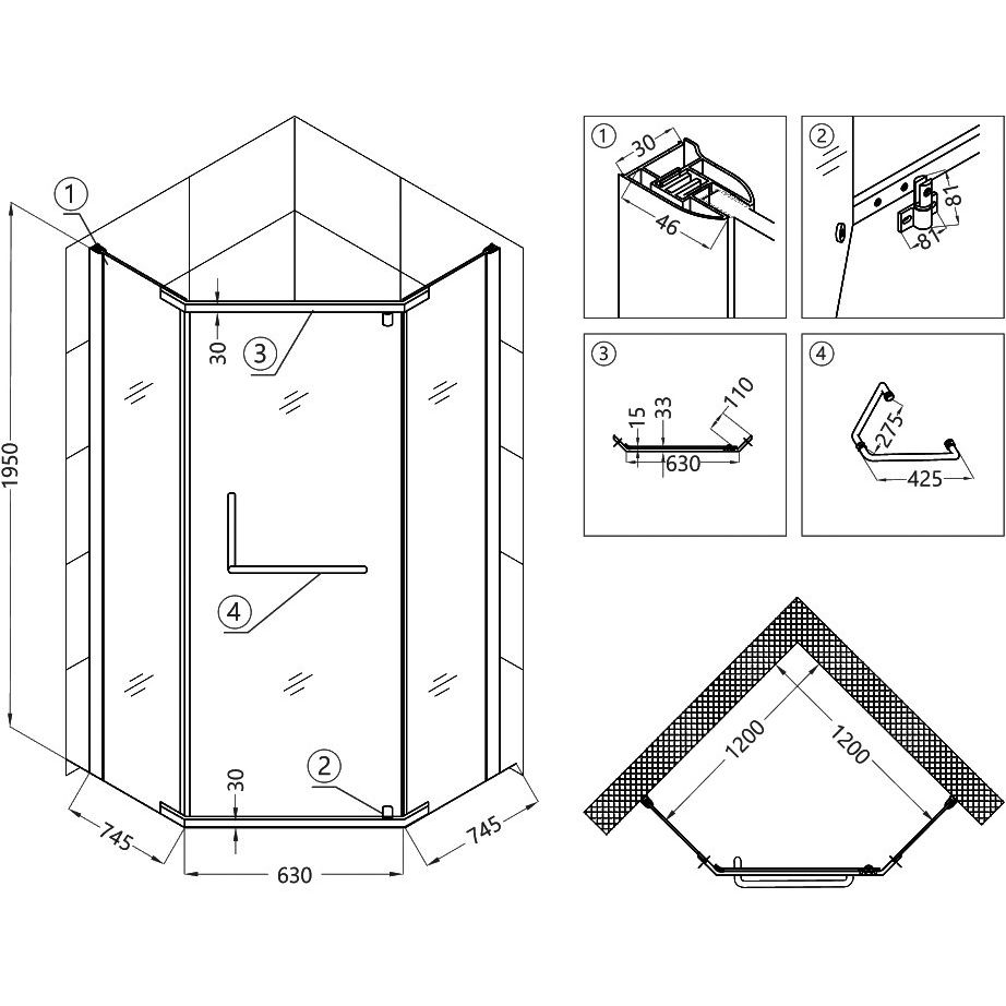 Душевой уголок RGW Passage PA-081B имеет размеры 120x120 см и устанавливается без поддона. Алюминиевый профиль выполнен в черном цвете и имеет матовую поверхность. Двери изготовлены из прозрачного стекла и открываются по распашной системе. Ширина входа составляет 61.2 см, что обеспечивает комфортный доступ. Петли сделаны из нержавеющей стали ASI 304, обеспечивая надежность и долговечность. Продукт оснащен полотенцедержателем и сопровождается гарантией на 3 года.