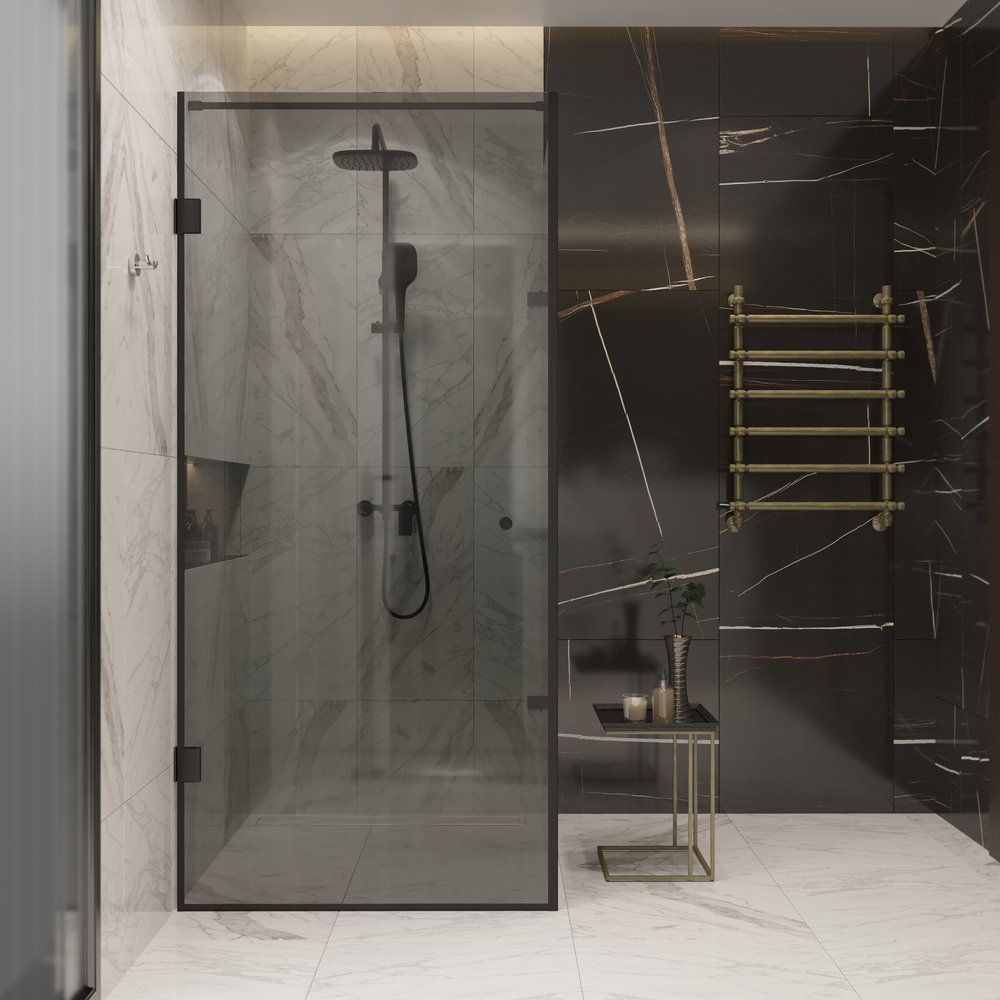 Душевой уголок STWORKI Орхус 90x90 см — это воплощение стильного минимализма и современного комфорта. Ванную комнату он преобразит в элегантное место отдыха благодаря матовому черному профилю и тонированному стеклу. Изготовленный из закаленного стекла высокого класса, он гарантирует долговечность и безопасность, позволяя вам наслаждаться душевыми процедурами в полном спокойствии. Фторопластовые кольца и бесшумные ролики обеспечивают плавность открывания, делая каждое использование максимально комфортным.