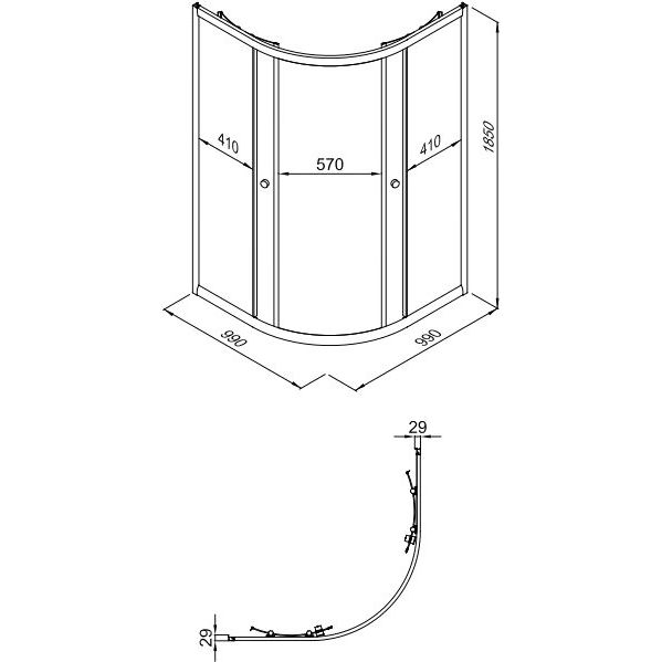 Габариты душевого уголка составляют 99x99 см, что делает его удобным вариантом для стандартных ванных комнат. Конструкция оснащена раздвижной системой дверей, которая открывается плавно и бесшумно. Ширина входа составляет 57 см, что обеспечивает легкий доступ внутрь. Основной материал — алюминиевый профиль с хромированной глянцевой поверхностью, который устойчив к ржавчине и коррозии. Душевой уголок рассчитан на пристенный монтаж в угол, а поддон необходимо приобретать отдельно. Гарантия — 5 лет, что свидетельствует о высоком качестве и надежности продукции.