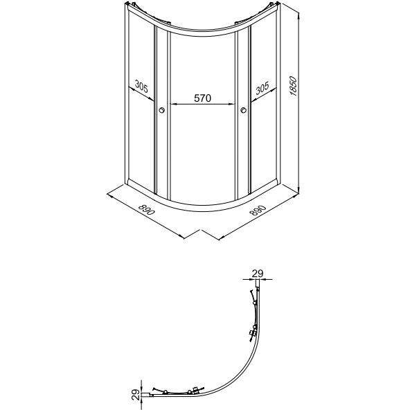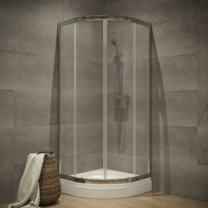 Представленный душевой уголок имеет размеры 89x89 см, что позволяет удобно размещать его в ванных комнатах любых размеров. Раздвижные двери оснащены прозрачными полотнами, а вход шириной 57 см обеспечивает легкость доступа. Хромированный алюминиевый профиль с глянцевым покрытием добавляет изделию изысканный вид. Душевой уголок можно устанавливать в угол на поддон или без него, в зависимости от ваших предпочтений. Гарантия на изделие составляет 5 лет, что свидетельствует о его надежности и долговечности.