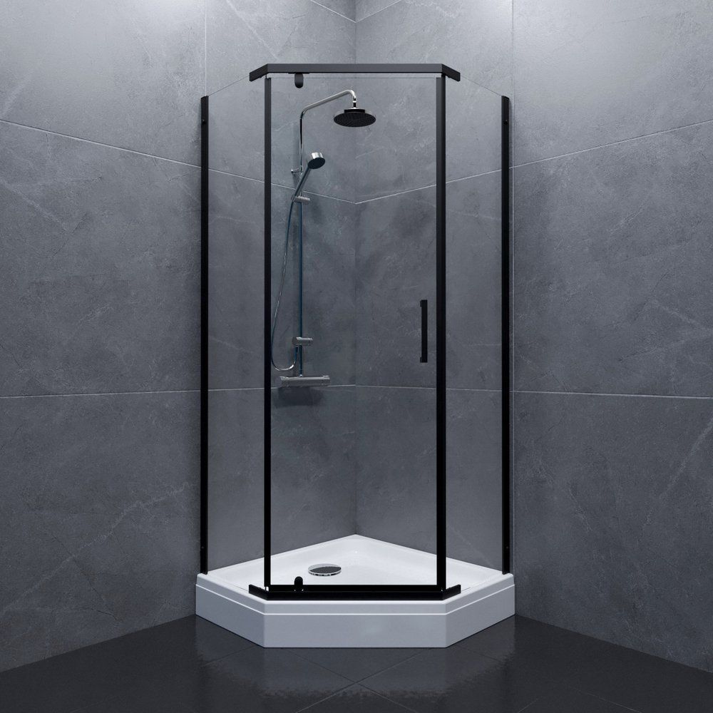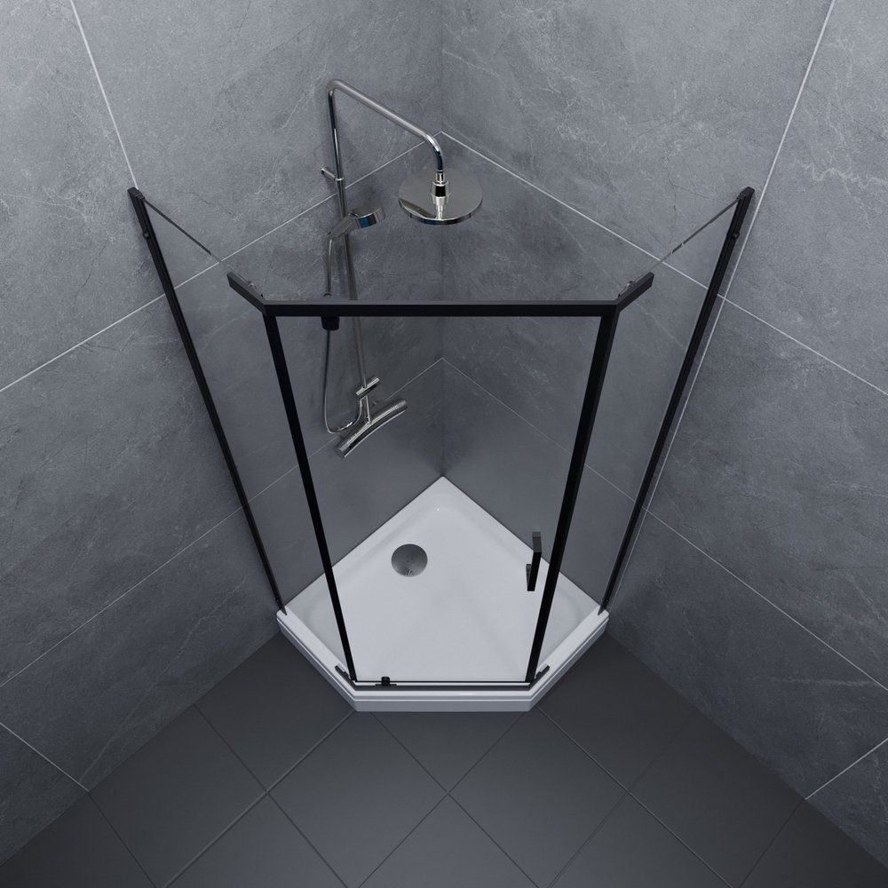 Душевой уголок с габаритами 90x90 см идеально подходит для установки в угол ванной комнаты. Он оснащен прочным акриловым поддоном средней глубины 6.5 см, который не требует больших усилий для использования и позволяет набирать немного воды. Черный алюминиевый профиль придает изделию элегантный матовый вид. Ширина входа составляет 50 см, а двери имеют прозрачное полотно, добавляющее ощущение простора.