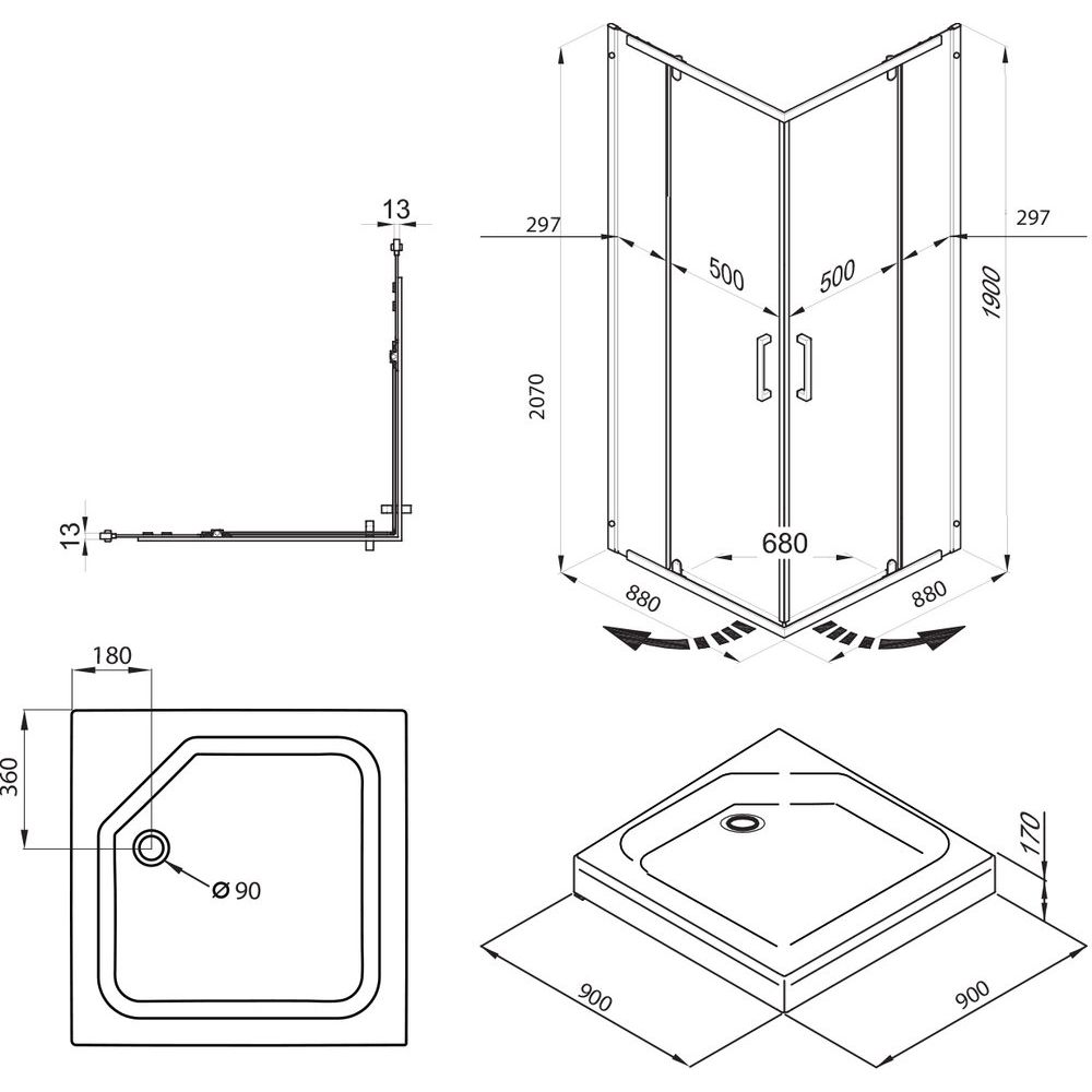 - Простая установка в углу с возможностью напольного монтажа или установки на поддон.