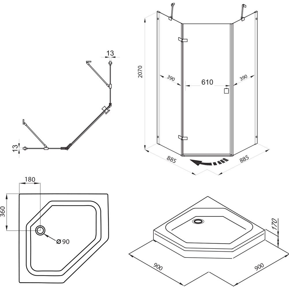 - Комфортный монтаж на пол, поддон или в пристенный угол.