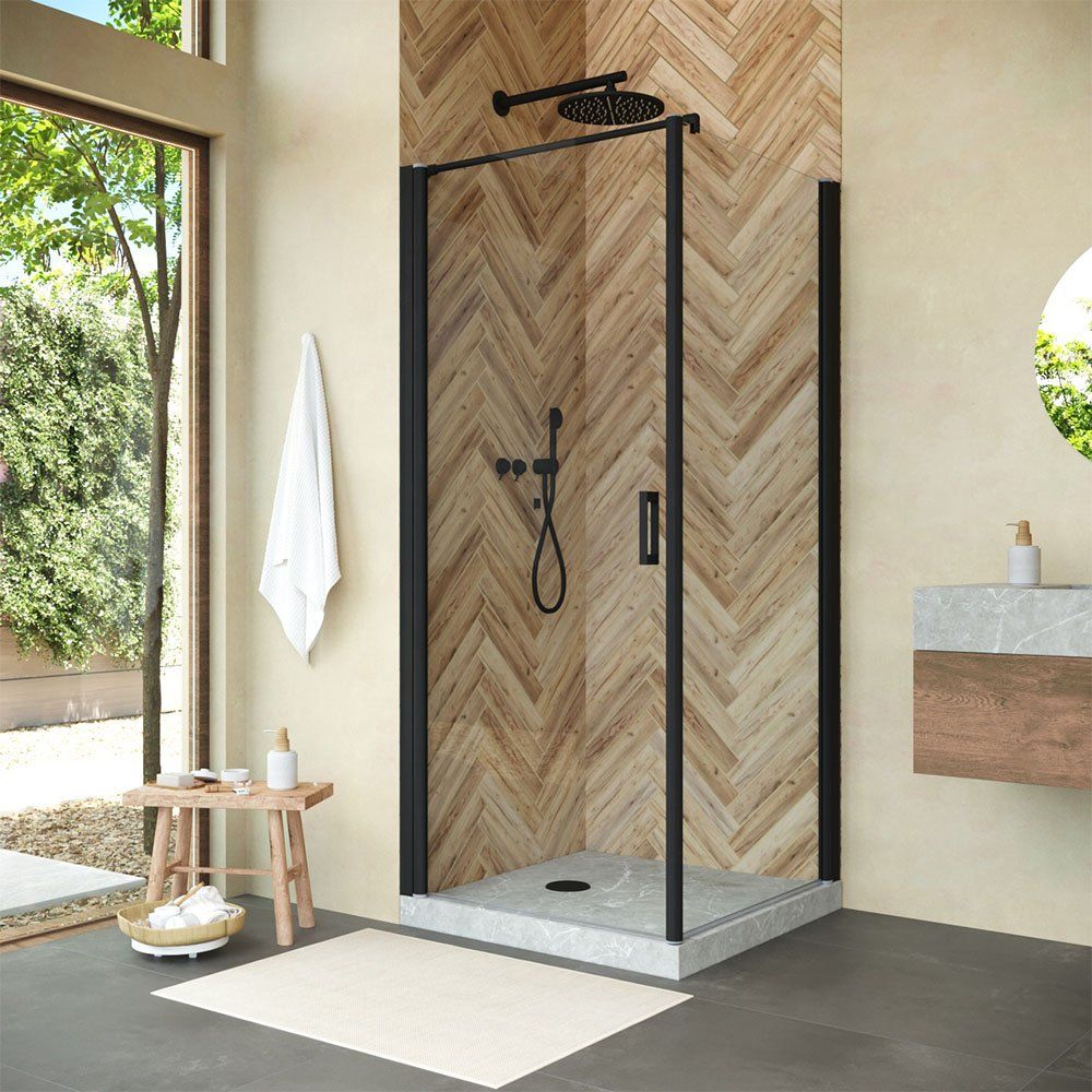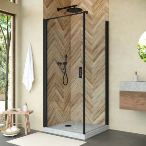 - Элегантное сочетание черного матового профиля и прозрачного стекла подчеркивает современный дизайн.