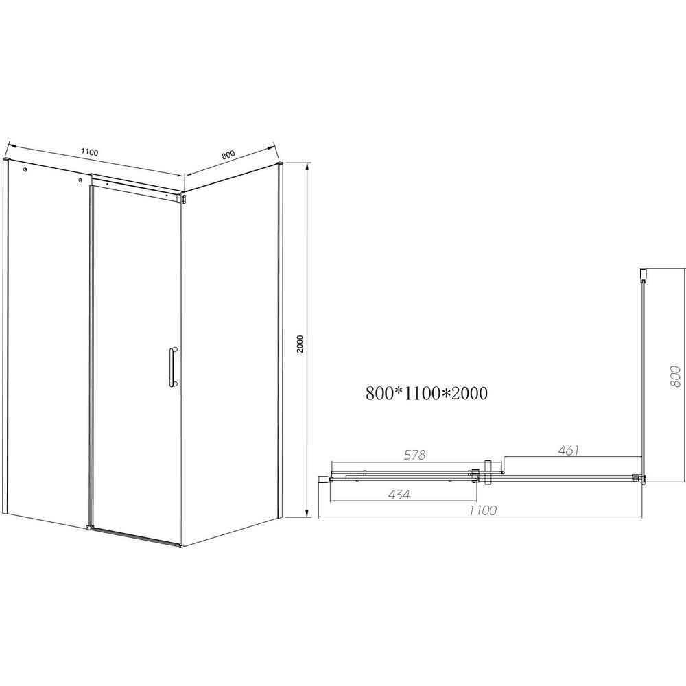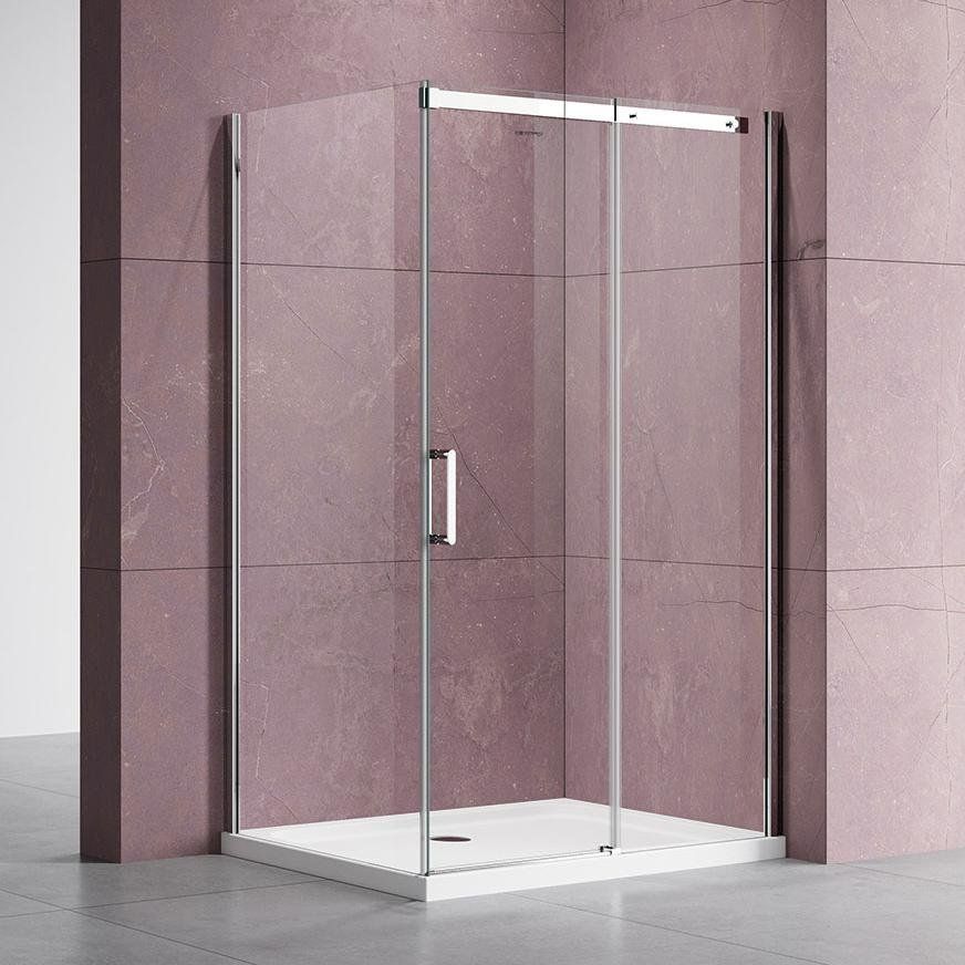 Габариты душевого уголка составляют 110х80 см, что делает его компактным решением для ванных комнат любого размера. Изделие устанавливается в угол, поддерживая как напольный монтаж, так и использование поддона, который необходимо приобретать отдельно. Прозрачные двери с раздвижной системой имеют ширину входа 46.1 см, а покрытие «антикапля» значительно упрощает уход за ними. Прочный хромированный профиль из алюминия обеспечивает долговечность и стильный вид на протяжении долгих лет. На душевой уголок предоставляется 3 года гарантии.