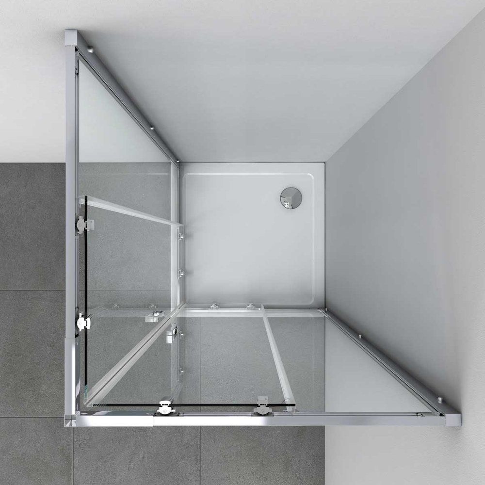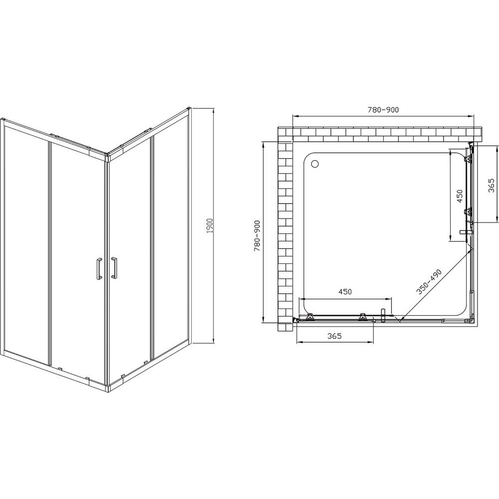 Душевой уголок измеряет 90x90 см, может быть установлен на поддон или непосредственно на пол, с пристенным монтажом в угол. Раздвижная система дверей с прозрачным стеклом обеспечивает ширину входа от 350 до 490 мм, что позволяет комфортно входить и выходить из душа. Алюминиевый профиль обладает не только прочностью, но и стильным хромированным покрытием. Основная ширина входа составляет 49 см, що идеально подошло бы для любой городской квартиры или загородного дома.