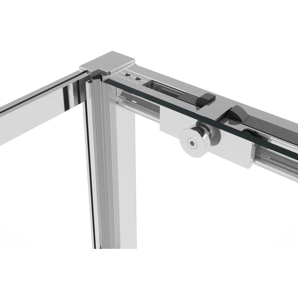 - Элегантный дизайн с глянцевыми, хромированными профилями и прозрачными дверями.