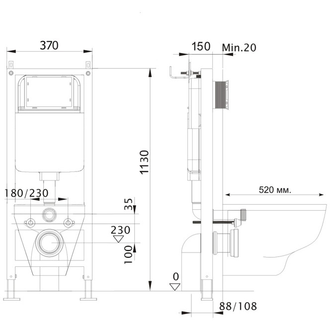 - Оцинкованные ножки с простой и бесступенчатой регулировкой до 20 см позволяют установить сантехнику на комфортной высоте