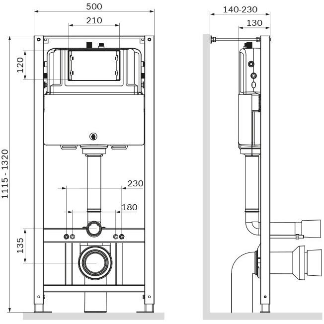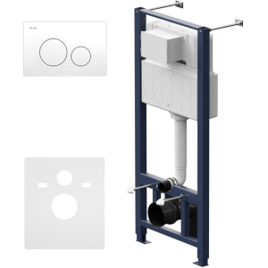 Система крепится в капитальную стену и пол, предлагает монтажную глубину 14 см и высоту 111.5 см. Диаметр слива составляет 9 см, а объем смывного бачка — 3 и 6 литров. Система имеет очень удобное межосевое расстояние под крепежные шпильки 18 и 23 см. Подвод воды может быть сверху или сбоку, что делает установку еще более гибкой. Пневматическая двухрежимная клавиша смыва изготовлена из ABS пластика и представлена в белом глянцевом цвете, ее установка возможна на любом расстоянии от инсталляции.