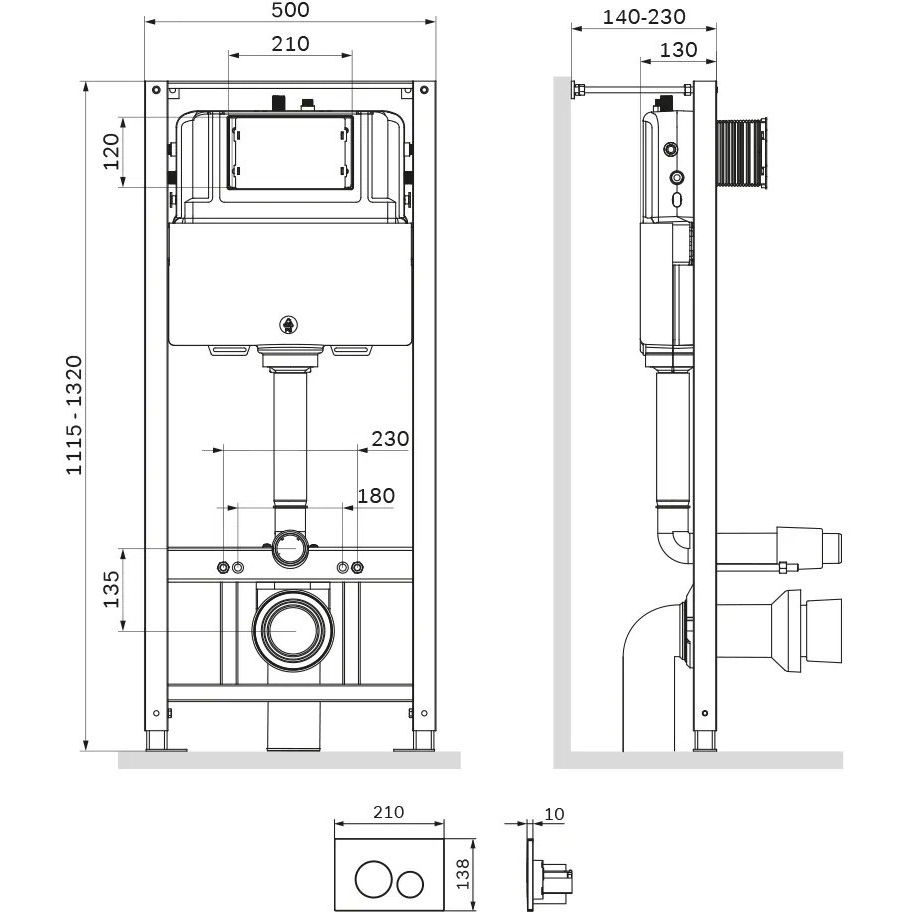 Эта система монтируется к капитальной стене и полу, что обеспечивает надежность конструкции. Пневматическая кнопка смыва позволяет установить её на удобном для вас расстоянии, а экономичный слив с двумя режимами помогает бережно относиться к ресурсам. Объем смывного бачка составляет 3 и 6 литров, а подвод воды может быть осуществлен как сверху, так и сбоку. Диаметр слива в 9 см и монтажная глубина в 14 см делают инсталляцию универсальной для различных типов унитазов. Высота установки составляет 111,5 см, межосевое расстояние под крепежные шпильки — 18/23 см. Обратите внимание, что комплект включает в себя смывной бачок, кнопку смыва и звукоизолирующую прокладку. Гарантия на кнопку смыва — 2 года.