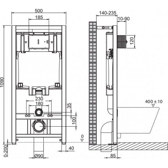 Система инсталляции BelBagno BB002-80 предназначена для капитальной стены и пола, обеспечивая жесткую фиксацию. С наличием двух режимов экономного слива, вы можете выбрать объем воды в 3.5 и 4.5 литра, а также в 3 и 6 литра, в зависимости от ваших нужд. Диаметр сливного отверстия составляет 9 см, что способствует эффективной работе системы. Инсталляция имеет монтажную глубину 14 см и высоту 109 см, а межосевое расстояние для крепежных шпилек — 18 или 23 см. Подвод воды осуществляется сверху, упрощая установку.