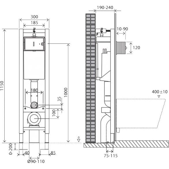 Система оборудована смывным бачком с экономичным сливом: предусмотрены две кнопки для полного и частичного слива 3 и 6 литров соответственно. Водоснабжение предусмотрено сверху, а диаметр слива составляет 9 см, что обеспечивает надежную и быструю работу. Монтажные параметры включают глубину 19 см и высоту 115 см, что делает установку оптимально удобной для разных интерьеров. Межосевое расстояние под крепежные шпильки — 18 см.