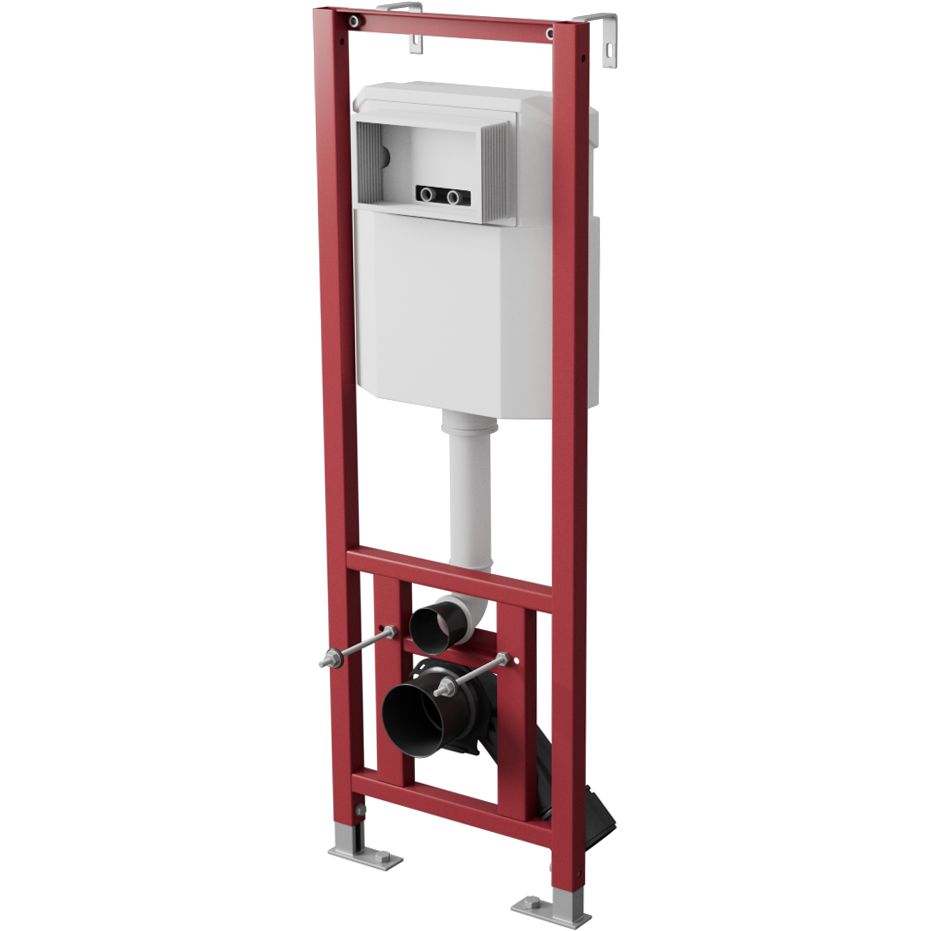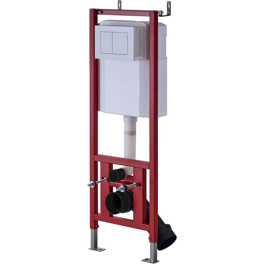 D&K DI8640116 устанавливается в капитальную стену и пол, обеспечивая надежную фиксацию. Механическая кнопка смыва оснащена режимами частичного (3 л) и полного (6 л) слива. Подвод воды осуществляется сверху, а диаметр слива варьируется от 9 до 11 см. Общая монтажная высота составляет 135.5 см с глубиной установки 13 см, что позволяет экономить пространство. Благодаря межосевому расстоянию под крепежные шпильки 18/23 см, инсталляция легко адаптируется к различным условиям монтажа. В стандартную комплектацию входят смывной бачок, кнопка смыва и звукоизолирующая прокладка.