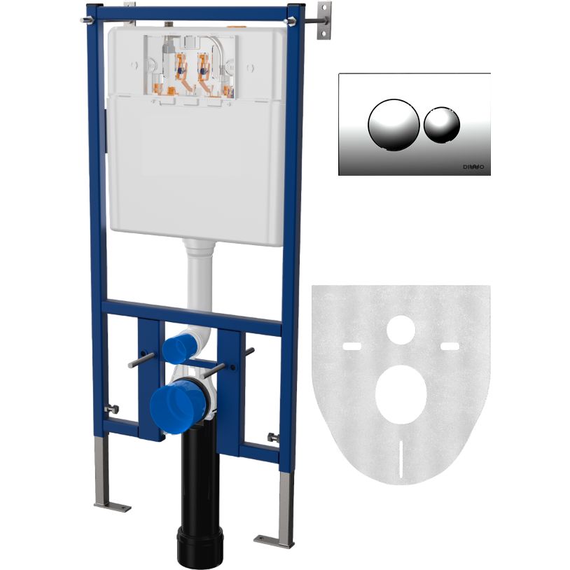 Система инталляции DIWO 4501 укомплектована всем необходимым для установки: в набор входит смывной бачок и кнопка смыва. Установка возможна с монтажом в капитальную стену и пол, а регулировка выходного клапана позволяет использовать систему при самых разных уровнях водного давления.