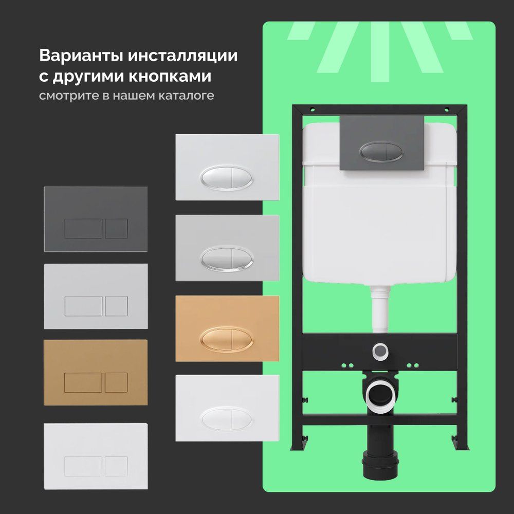Для полноценного использования системы инсталляции рекомендуется приобрести звукоизолирующую прокладку отдельно. В комплект уже входит смывной бачок и хромированная кнопка смыва.