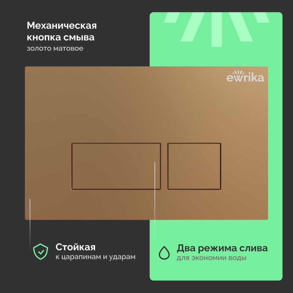 Система инсталляции для унитазов EWRIKA ProLT 0026–2020 - это ваш надежный соратник в создании современного и эстетичного санузла. Спроектированная с умом, эта инсталляция занимает минимум пространства благодаря компактным габаритам всего 10×107 см. Особое внимание уделено комфорту — встроенный смывной бачок защищен от конденсата и минимизирует шум при наполнении водой за счет инновационного механизма. Двойной режим смыва, регулируемый в диапазоне от 3 до 6 литров, обеспечит экономное потребление воды, а стильная кнопка смыва с матовым золотым покрытием станет акцентом любого интерьера.
