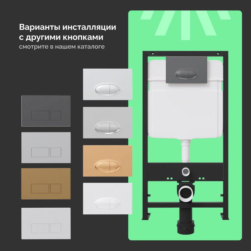 Эта инсталляция крепится к капитальной стене и полу, обеспечивая устойчивое удержание конструкции. Компактные размеры установки - монтажная высота 107 см и глубина всего 10 см, идеально вписываются в любой интерьер. В смывном бачке предусмотрена двухрежимная система смыва - на 3 и 6 литров, которая позволяет выбрать наиболее подходящий режим использования. Монтажная рама вмещает унитазы всех подвесных типов благодаря настраиваемому межосевому расстоянию 18-23 см. К кнопке слива, выполненной из стойкого к царапинам термопласта, не требуется подвод электричества — она механическая и отвечает за полный контроль при нажатии.