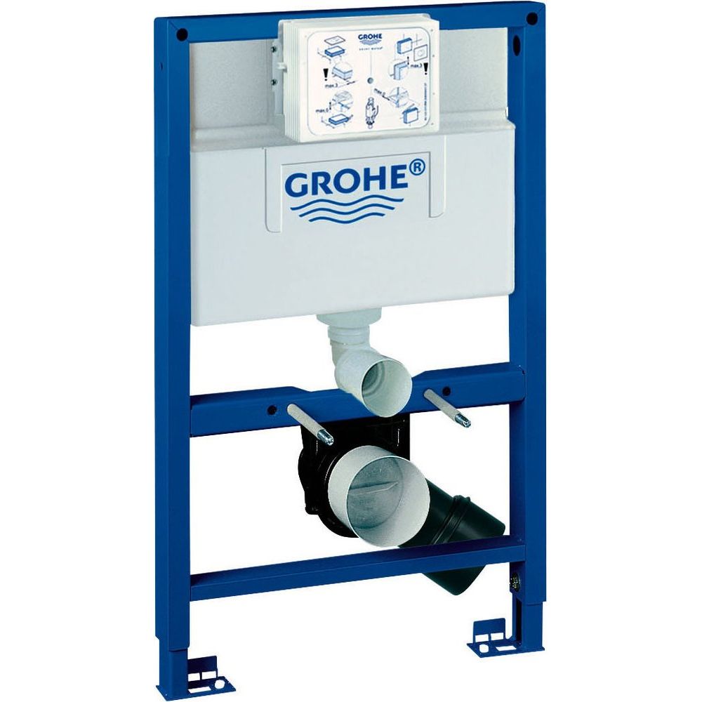 Обратите внимание, что для монтажа перед стеной и накладная панель управления приобретаются отдельно. Для установки системы с безободковым унитазом любого бренда потребуется кольцо для регулировки смыва Grohe 42300000. Если же унитаз имеет высоту от крепления до конца чаши менее 205 мм, потребуется дополнительный установочный комплект Grohe Rapid SL 38779000. Учтите также, что звукоизолирующая прокладка приобретается отдельно, но смывной бачок уже включен в комплект.