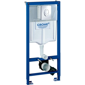 При установке инсталляции с безободковым унитазом не забудьте приобрести кольцо для регулировки смыва Grohe 42300000. Для моделей унитазов с высотой чаши менее 205 мм понадобится установочный комплект Grohe Rapid SL 38779000. Кроме того, рекомендуется использовать звукоизолирующую прокладку для снижения уровня шума при эксплуатации, которая приобретается отдельно. В комплект уже входят смывной бачок и пневматическая кнопка смыва, что избавит вас от необходимости дополнительных закупок при стандартной установке.