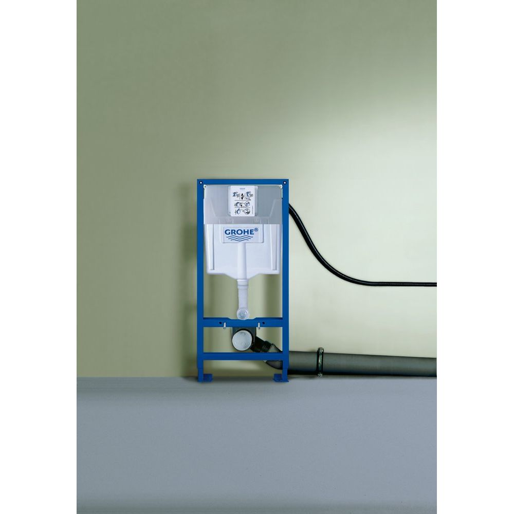 При установке безободкового унитаза необходимо дополнительно приобрести кольцо для регулировки смыва Grohe 42300000. Если высота от креплений до конца чаши унитаза менее 205 мм, потребуется комплект для установки Grohe Rapid SL 38779000. Однако, основные комплектующие, такие как бачок и кнопка смыва, уже включены в комплект.