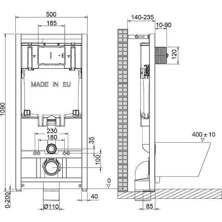 - Высота инсталляции составляет 109 см, что позволяет адаптировать высоту установки унитаза для вашего удобства.