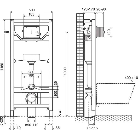 Система инсталляции OLI Eco Oli 120 eco проста в использовании и установки. Она крепится как в капитальную стену, так и в пол, обеспечивая максимальную устойчивость за счет механического крепежа. Максимальная нагрузка конструкции составляет 400 кг, что позволяет использовать более широкий спектр подвесных унитазов. Подвод воды осуществляется с задней стороны, а объем бачка составляет 7 литров. Диаметр слива равен 9 см, при этом монтажная глубина — всего 12.6 см. Модель оснащена регулируемым фановым отводом и возможностью регулировки по высоте от 0 до 200 мм, что делает монтаж действительно гибким.