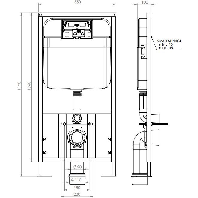 Система инсталляции SantiLine SL-03 имеет объем смывного бачка на 3 и 6 литров, что позволяет выбирать между полным и частичным сливом. Вода подводится сверху, а диаметр слива составляет 9 см, обеспечивая оптимальную скорость и эффективность смыва. Монтажная глубина конструкции равна 13 см, а высота — 109 см, что позволяет скрыть систему за стеной, экономя пространство в ванной. Межосевое расстояние под крепежные шпильки варьируется от 18 до 23 см, что позволяет адаптировать установку под разные размеры унитазов.
