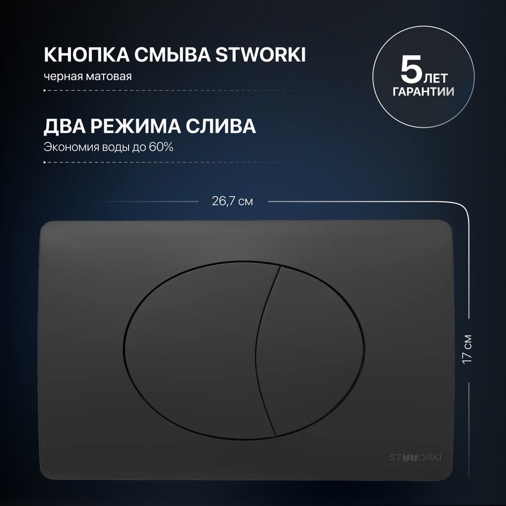 Система инсталляции для унитазов STWORKI 510162 — это воплощение швейцарского качества и инженерной мысли, созданное для комфорта и эстетики вашей ванной комнаты. Данная система совместима с любыми моделями унитазов благодаря стандартному межосевому расстоянию под крепежные шпильки (18/23 см). Компактные размеры делают инсталляцию идеальной для любого санузла, а уникальная конструкция обеспечивает надежность и долговечность.