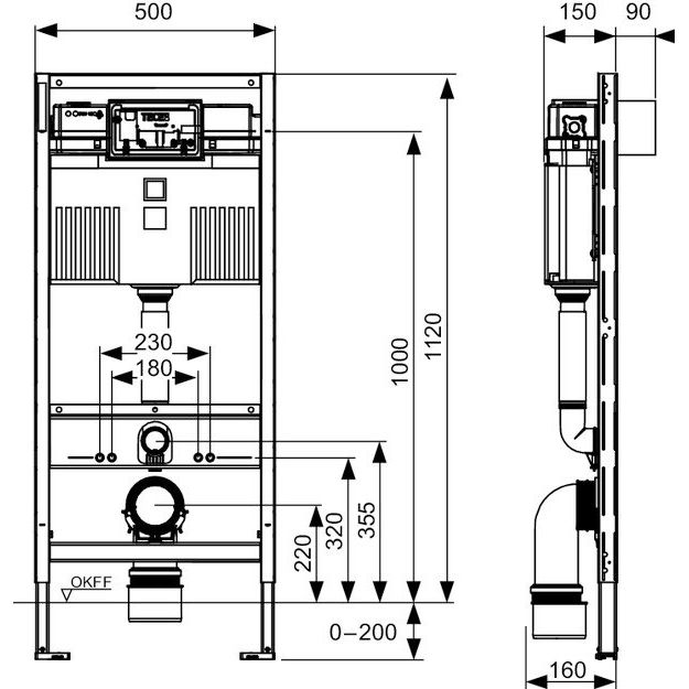 Система инсталляции TECEprofil Uni 2.0 крепится как в капитальные стены, так и к полу, что обеспечивает дополнительную устойчивость конструкции. Она оснащена смывным бачком с экономным сливом на два режима — для полного и частичного слива. Объем бачка варьируется от 3 до 9 литров в зависимости от ваших потребностей. Возможность подводки воды сверху или сбоку повышает гибкость монтажа. Диаметр слива составляет 9 см, а монтажная глубина всего 18 см, что делает инсталляцию компактной. При этом высота установки достигает 112 см, а межосевое расстояние для крепежных шпилек может составлять 18 или 23 см.