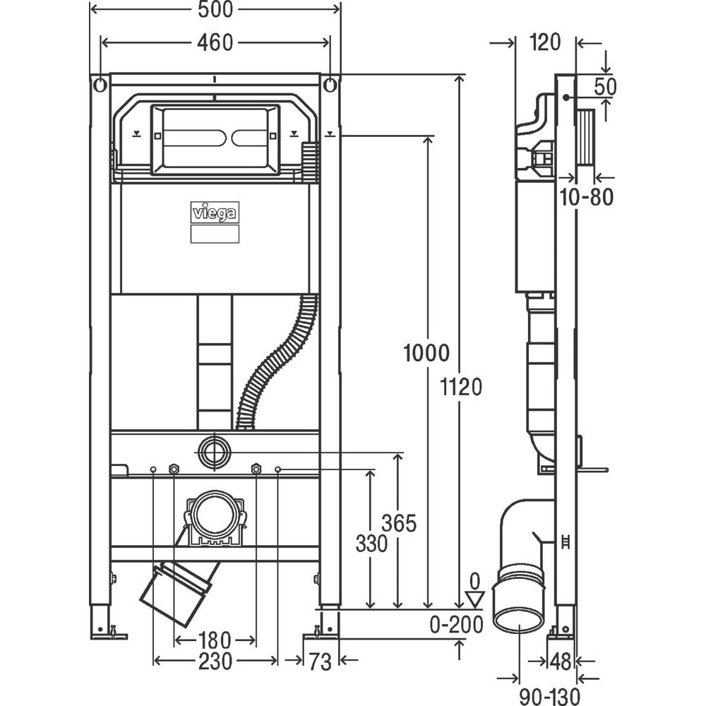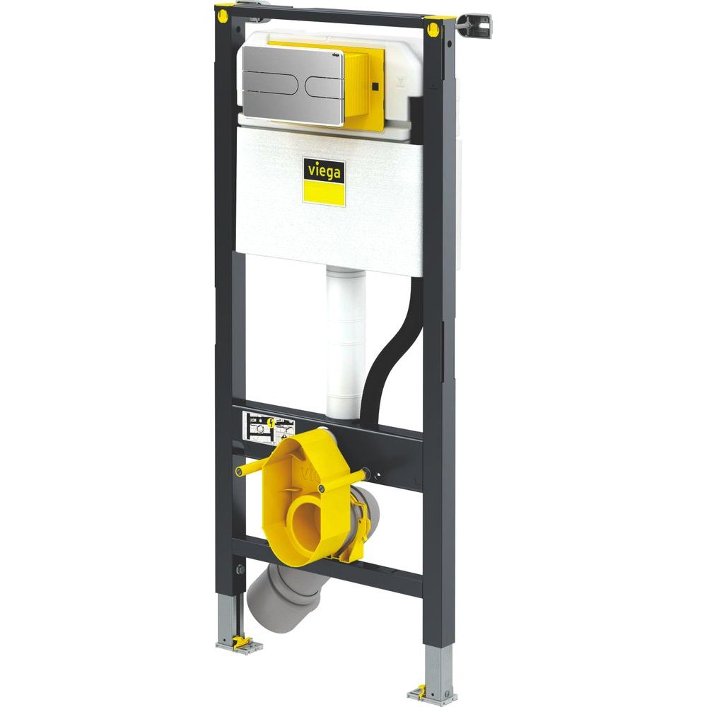 Система инсталляции Viega Prevista закрепляется к капитальной стене и полу, обеспечивая максимальную устойчивость. Ее монтажная высота составляет 112 см, а глубина — 12 см, что позволяет экономить пространство. Сливающий бачок имеет объем 3 и 6 литров, обеспечивая экономный расход воды. Вход для подвода воды выполнен сверху или сзади, что делает установку более универсальной. Диаметр слива составляет 9 см, а межосевое расстояние для крепежных шпилек — 18 см.
