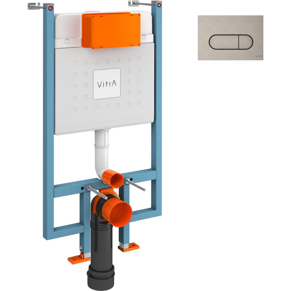 Учтите, что звукоизолирующая прокладка для более тихой работы системы приобретается отдельно. В комплекте вы уже получите смывной бачок и кнопку смыва, что делает установку менее хлопотной и полной. Откройте для себя качество и удобство с системой инсталляции VitrA V-Fix Core.