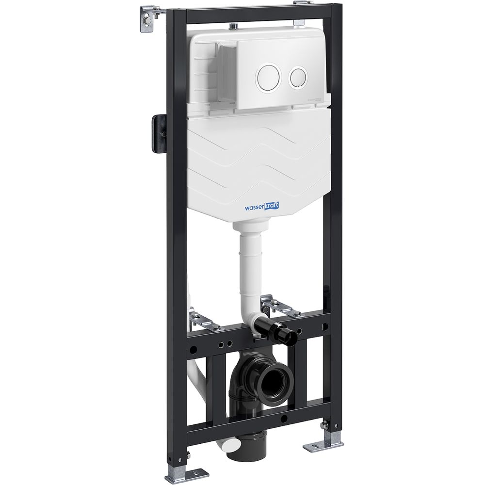 Инсталляция Wasserkraft Aller оснащена стальной несущей конструкцией толщиной 4 мм и опорной - 5 мм, что соответствует стандарту DIN 2392-2. Надежное крепление обеспечивается 6-точечной системой. Система легко регулируется по высоте и глубине монтажа и устанавливается в капитальную стену. Смарт функции включают в себя экономичный и регулируемый смыв (с водой снизу и сбоку). Объем бачка составляет 3 и 6 литров, а диаметр слива - 11 см. Предусмотрена выборочная функция сливания: полное или частичное, благодаря двум кнопкам смыва.