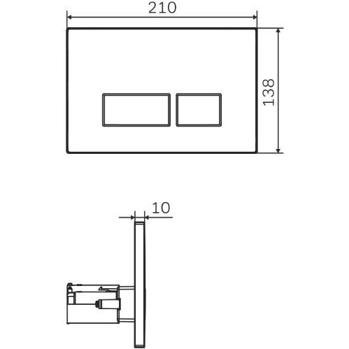 Размеры кнопки составляют 210 мм в ширину и 138 мм в высоту, при этом глубина всего 10 мм, что делает её незаметной, но функциональной частью инсталляции. Пневматическое управление позволяет предельно компактно разместить кнопку, обеспечивая удобство в использовании. Материал клавиши — прочный пластик, устойчивый к износу и внешним воздействиям, что гарантирует долгий срок службы изделия.
